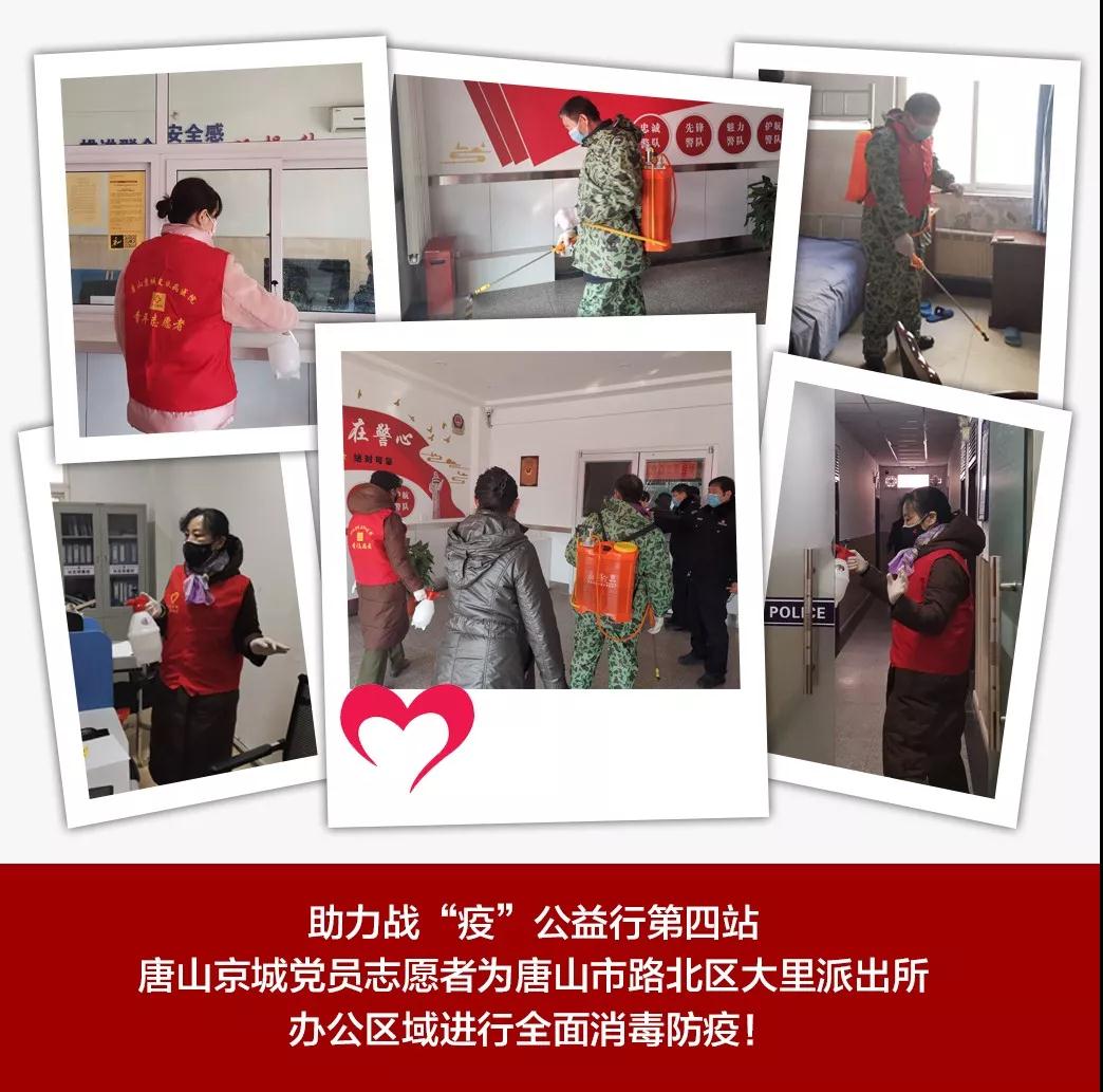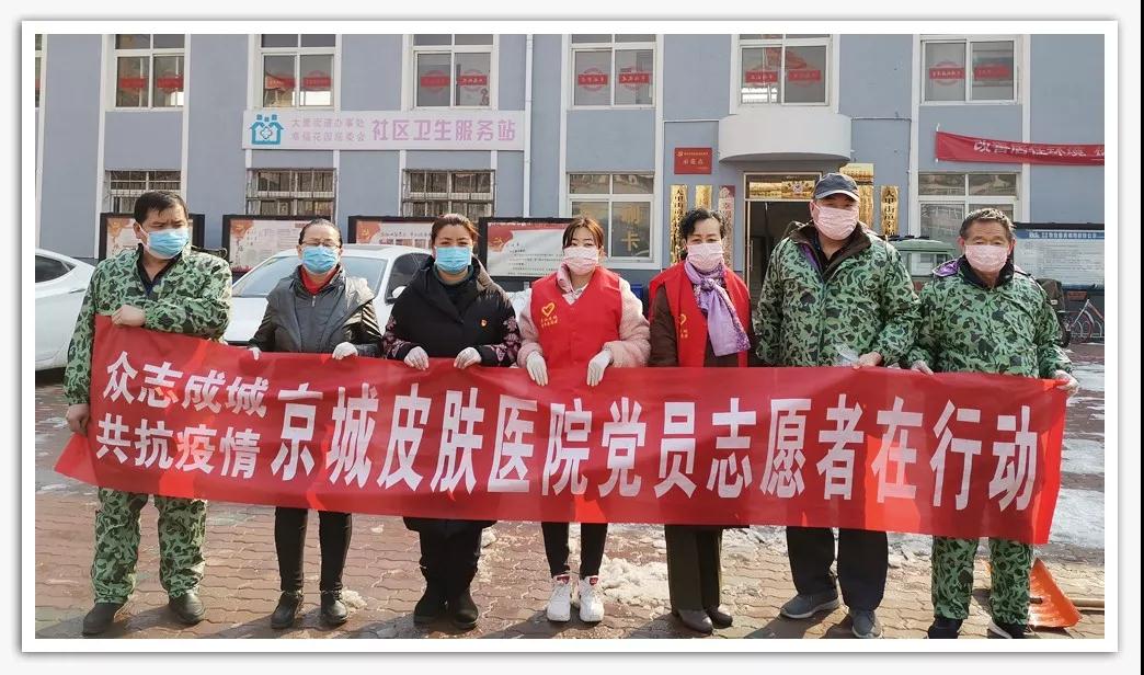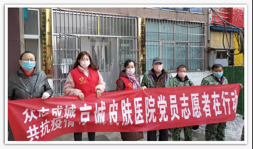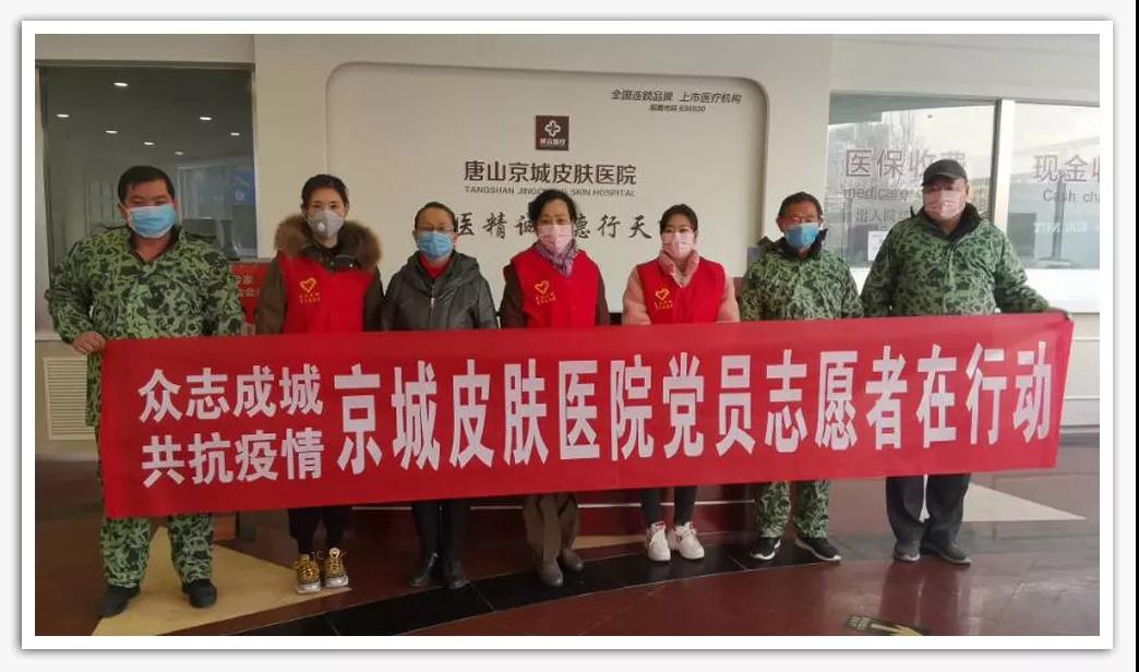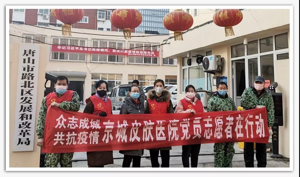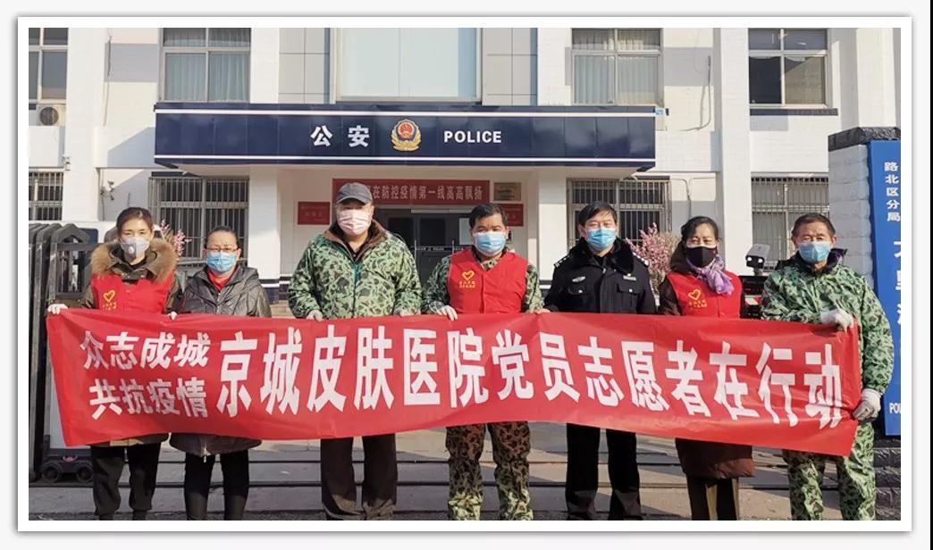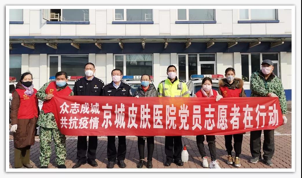 为了感谢防控疫情中坚守一线的英雄们,向守护我们城市的英雄们致敬,唐山京城皮肤医院党支部多方联系调配紧缺的物资,积极开展 “助力战“疫”,京城志愿者公益行”爱心行动。由党支部龚兰珍书记带领院内党员干部等组成的志愿者队伍,慰问坚守在一线的城市英雄,为他们捐赠防疫物资,对他们的办公室区域喷杀消毒,为全市的疫情联防联动工作贡献一份属于京城人的力量。