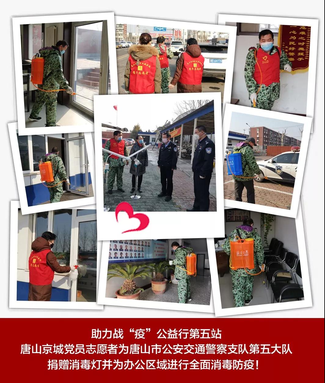 2月19日上午10点50分,唐山京城皮肤医院党支部龚兰珍书记带领党员志愿者,来到唐山市交警第五大队慰问,在消毒物资紧缺的情况下,将医院中调出来的两台紫外线消毒灯送给交警们消毒使用,并为他们办公区域、食堂进行全面的消毒,受到交警们的热烈欢迎!